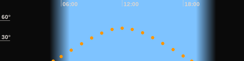 Höchster Stand (Kulmination)12:02 Uhr (h = 48.6°)