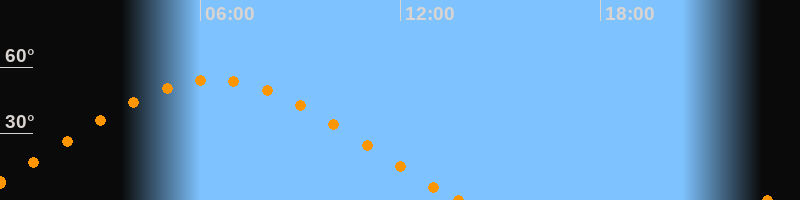 Höchster Stand (Kulmination)06:24 Uhr (h = 54.4°)