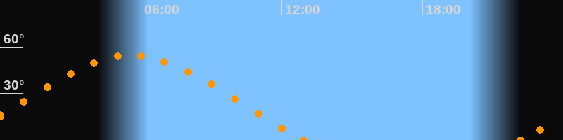 Höchster Stand (Kulmination)05:35 Uhr (h = 54.5°)