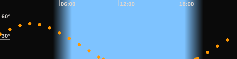 Höchster Stand (Kulmination)03:08 Uhr (h = 54°)