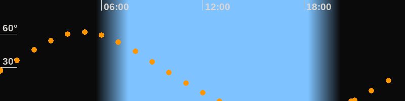 Höchster Stand (Kulmination)04:55 Uhr (h = 61.7°)