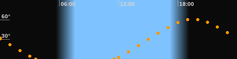 Höchster Stand (Kulmination)19:33 Uhr (h = 61°)