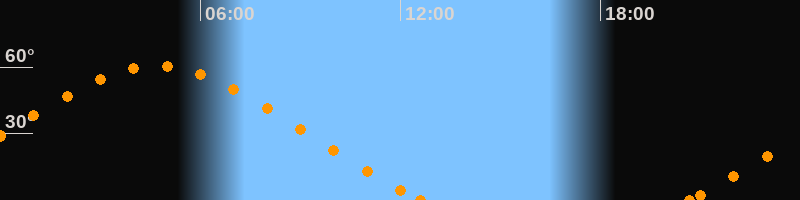 Höchster Stand (Kulmination)04:40 Uhr (h = 60.5°)