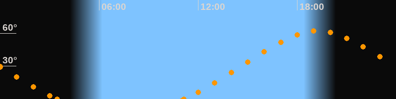 Höchster Stand (Kulmination)19:15 Uhr (h = 62.2°)