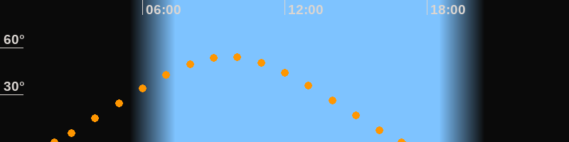 Höchster Stand (Kulmination)09:36 Uhr (h = 54.4°)