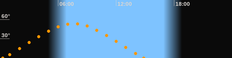Höchster Stand (Kulmination)07:36 Uhr (h = 53.6°)