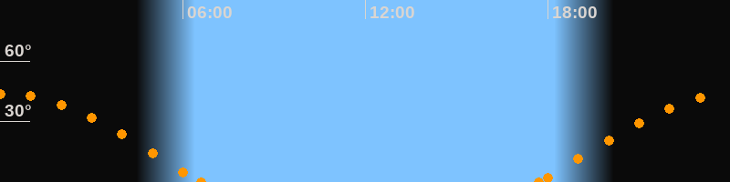 Höchster Stand (Kulmination)00:07 Uhr (h = 43.8°)