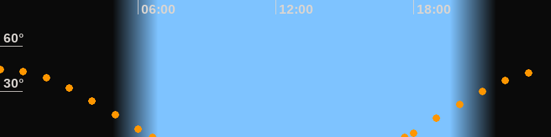 Höchster Stand (Kulmination)00:05 Uhr (h = 44.5°)