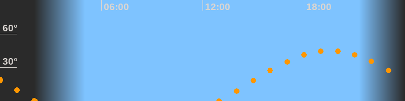 Höchster Stand (Kulmination)19:30 Uhr (h = 45.1°)