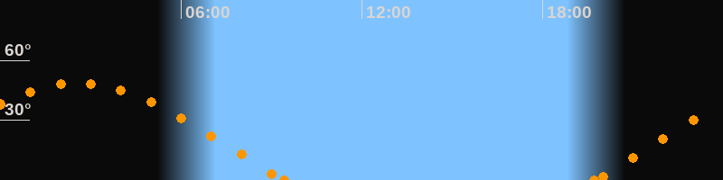Höchster Stand (Kulmination)02:36 Uhr (h = 48.6°)