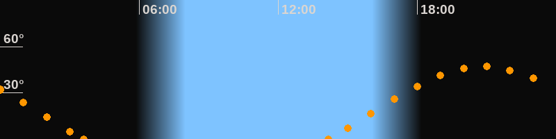 Höchster Stand (Kulmination)20:51 Uhr (h = 47.1°)