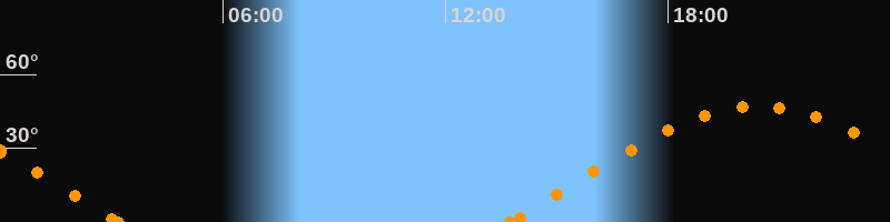 Höchster Stand (Kulmination)20:26 Uhr (h = 47°)