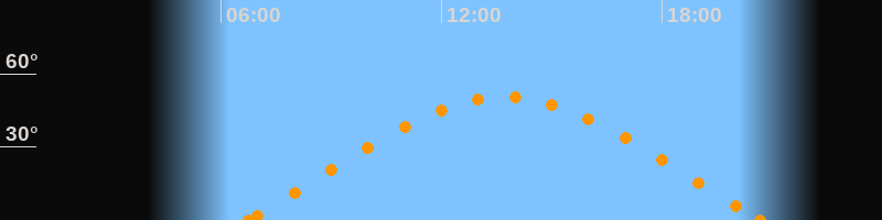 Aufgang06:44 Uhr im Osten (αAz = 71.5°)