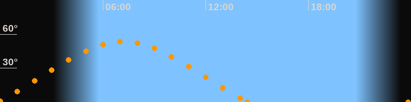 Höchster Stand (Kulmination)07:10 Uhr (h = 53.7°)