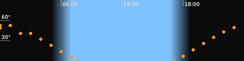 Höchster Stand (Kulmination)00:19 Uhr (h = 52.7°)