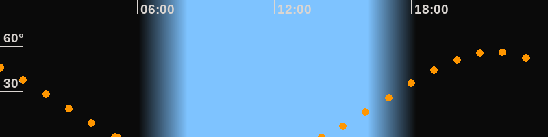 Höchster Stand (Kulmination)21:35 Uhr (h = 56.1°)