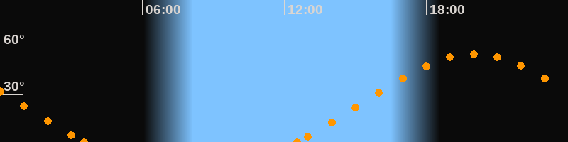 Höchster Stand (Kulmination)20:01 Uhr (h = 55.9°)