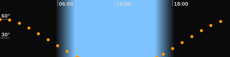 Höchster Stand (Kulmination)00:11 Uhr (h = 59.6°)