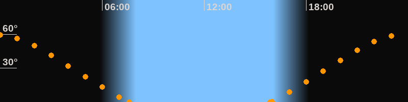 Höchster Stand (Kulmination)23:42 Uhr (h = 59.5°)