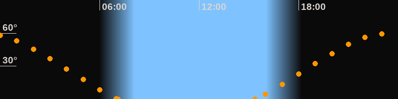Höchster Stand (Kulmination)23:12 Uhr (h = 59.5°)