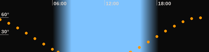 Höchster Stand (Kulmination)22:46 Uhr (h = 59.4°)