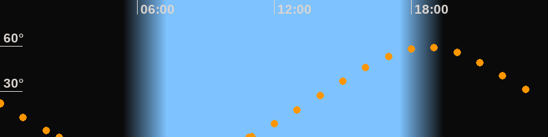 Höchster Stand (Kulmination)18:42 Uhr (h = 59.4°)