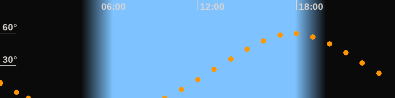 Höchster Stand (Kulmination)17:49 Uhr (h = 59.5°)