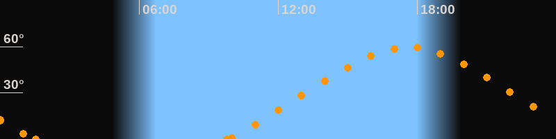 Höchster Stand (Kulmination)17:38 Uhr (h = 59.5°)