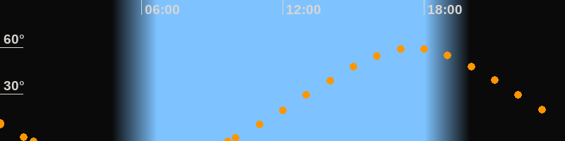 Höchster Stand (Kulmination)17:30 Uhr (h = 59.5°)