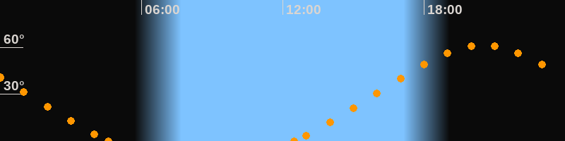 Höchster Stand (Kulmination)20:30 Uhr (h = 61.3°)
