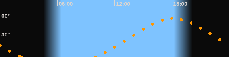 Höchster Stand (Kulmination)18:06 Uhr (h = 61.5°)