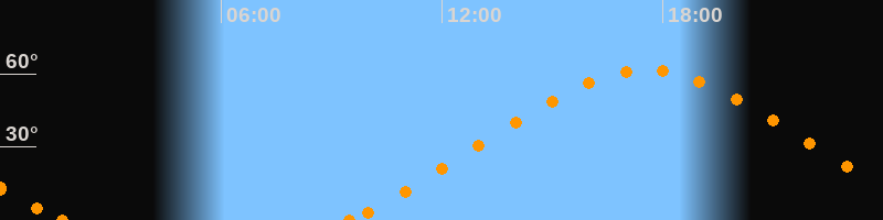 Höchster Stand (Kulmination)17:33 Uhr (h = 61.5°)