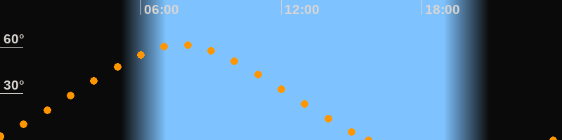 Aufgang23:36 Uhr im Nordosten (αAz = 52.7°)