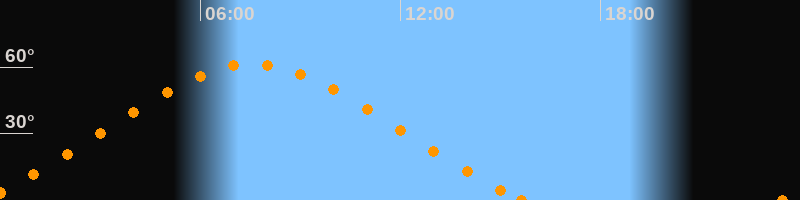 Aufgang23:28 Uhr im Nordosten (αAz = 52.7°)