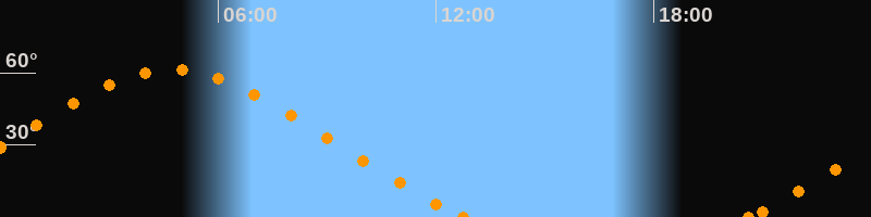 Höchster Stand (Kulmination)04:43 Uhr (h = 61.3°)