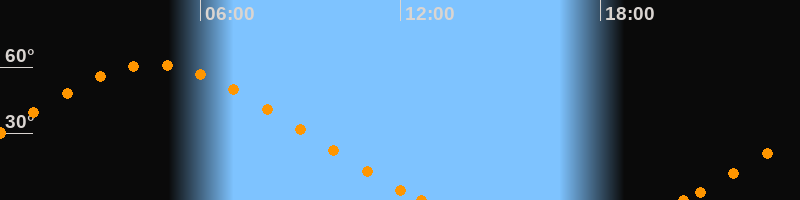 Höchster Stand (Kulmination)04:35 Uhr (h = 61.3°)