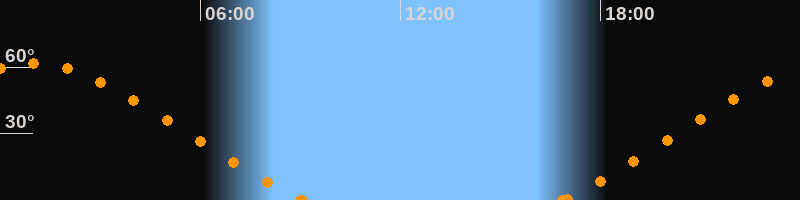 Höchster Stand (Kulmination)01:00 Uhr (h = 61.6°)