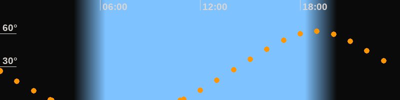 Höchster Stand (Kulmination)18:55 Uhr (h = 62.1°)