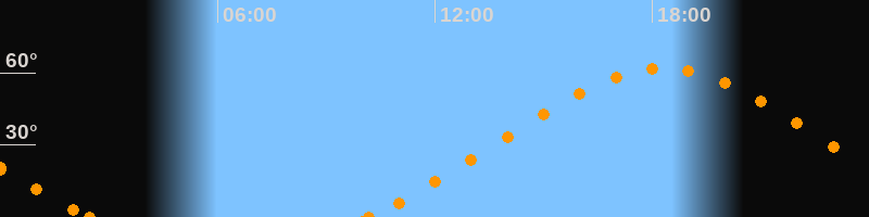 Höchster Stand (Kulmination)18:17 Uhr (h = 62.1°)