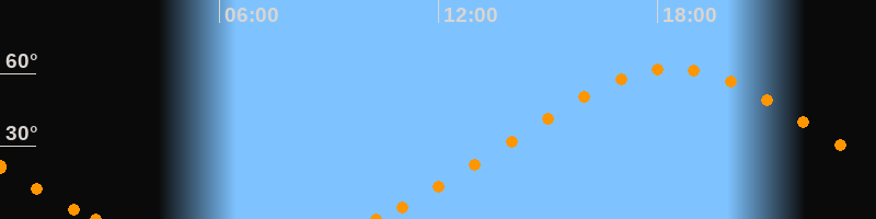 Höchster Stand (Kulmination)18:25 Uhr (h = 62.1°)