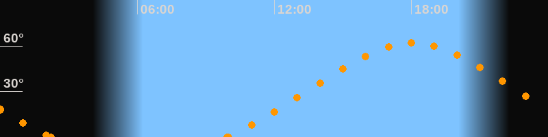 Höchster Stand (Kulmination)18:03 Uhr (h = 62.1°)