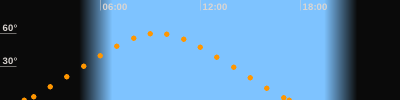 Höchster Stand (Kulmination)09:26 Uhr (h = 60.3°)
