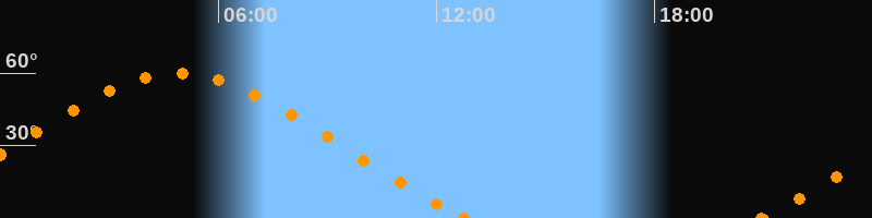 Höchster Stand (Kulmination)04:53 Uhr (h = 59.8°)