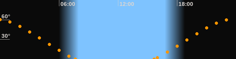 Höchster Stand (Kulmination)23:36 Uhr (h = 60.7°)