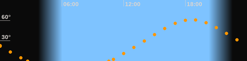 Höchster Stand (Kulmination)18:35 Uhr (h = 61.2°)