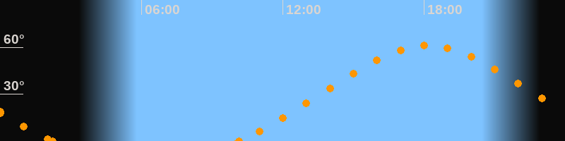 Höchster Stand (Kulmination)18:10 Uhr (h = 61.1°)