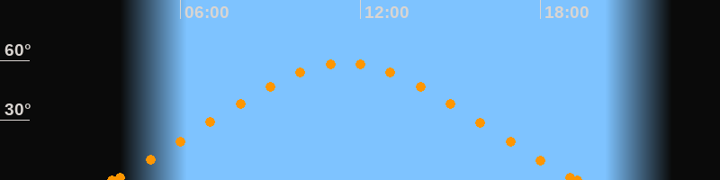 Höchster Stand (Kulmination)11:29 Uhr (h = 58.6°)