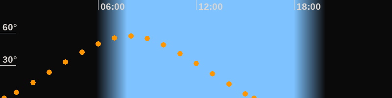 Höchster Stand (Kulmination)07:55 Uhr (h = 57.3°)