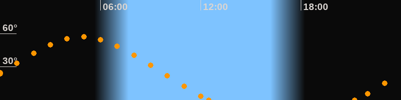 Höchster Stand (Kulmination)04:53 Uhr (h = 57.1°)