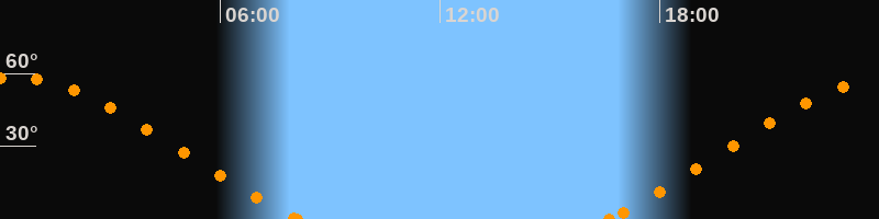 Höchster Stand (Kulmination)00:19 Uhr (h = 58.2°)